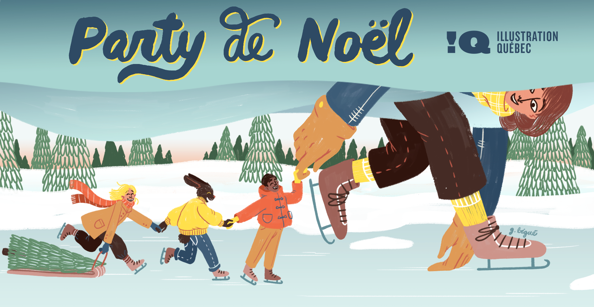 Bannières illustrées pour le party de Noël d'Illustration Québec. Version officielle et sa version alternative.