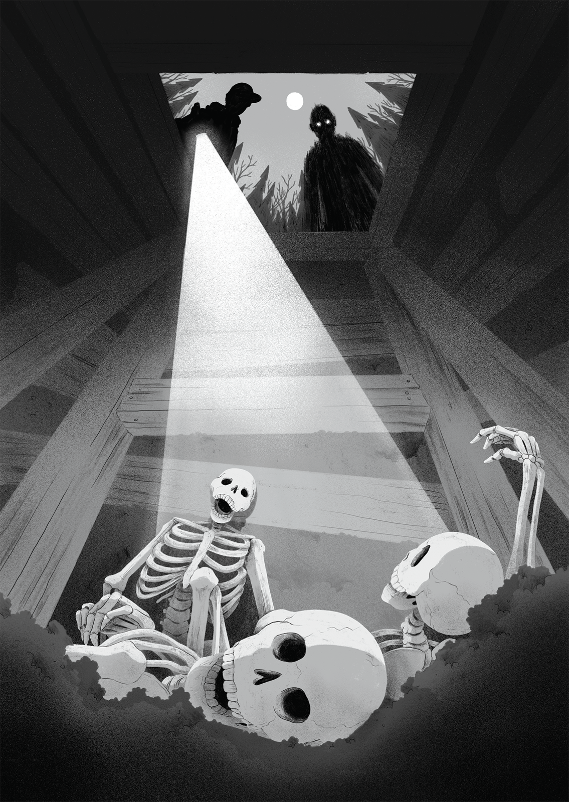 Illustration for horror children's book "Quincaillerie Miville" written by Alexandre Côté-Fournier and published by la courte échelle. Cover and interior illustrations. Published on May 9th, 2022.