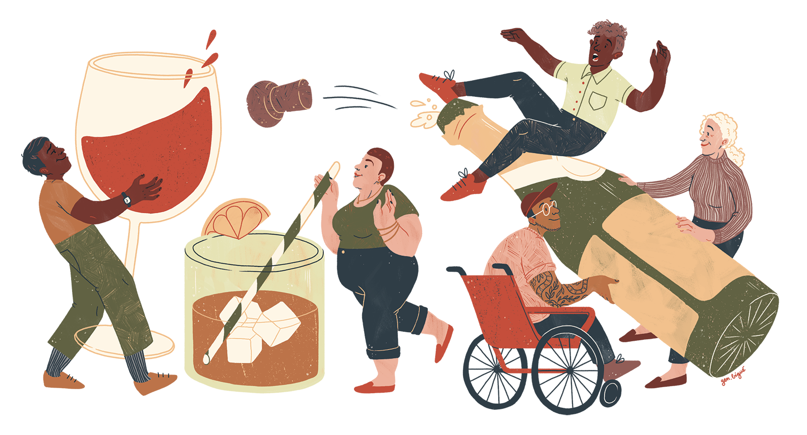Illustrations éditoriales pour le journal 24 heures, pour l'article « Repenser sa relation à l'alcool ». Couverture et illustration intérieure. Août 2021.